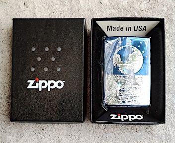 ドルフィン好きにはたまらない、イオンブルーのデザインzippo。
