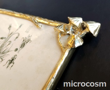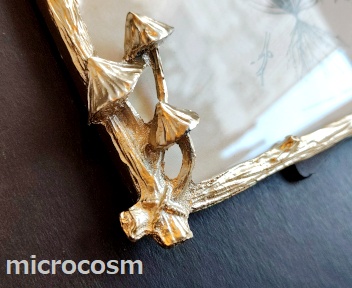 キノコと木の枝で縁取られたようなデザインの可愛いフォトフレーム。